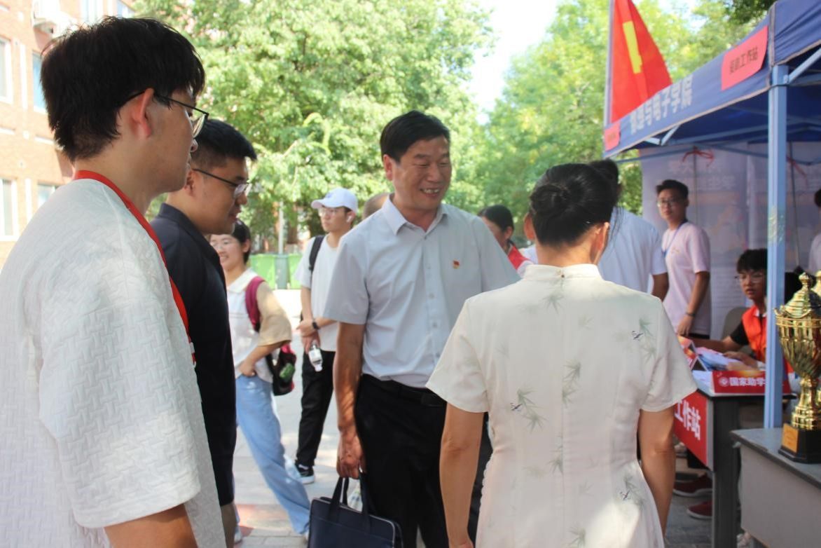 学院党委书记张慧、执行院长李国强、党委副书记刘寒冰,副院长李新营和副院长魏高明等多次来到新生报到现场,看望前来报到的新生对在迎新志愿者们表达了亲切的慰问。张慧对学院的迎新工作给予充分肯定并对迎新工作者的辛勤付出表示感谢,同时叮嘱大家要为新生提供热情、周到、暖心的服务,高质量完成51大赛