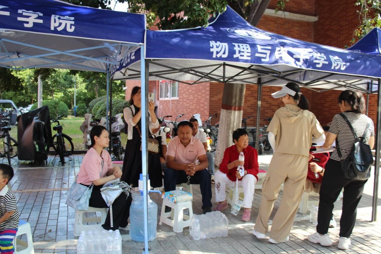 9月4日6:00,2024级新生辅导员李瑞光以及各年级辅导员在物院A楼前报到现场,协调迎新志愿者们和党员志愿者们做好迎接萌新的准备工作。为保障新生安全到校,部分志愿者在大西门和迎新大本营处高举指示牌,为新生指引方向。