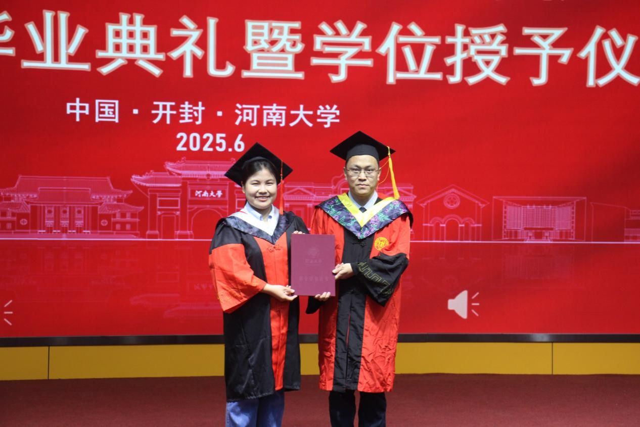 "师恩如沧海浩瀚无垠,师德若嵩岳巍峨崇高。"2022级硕士毕业生代表陈雪深情回顾了求学三载的成长点滴,表达了对母校的眷恋与对未来的憧憬。