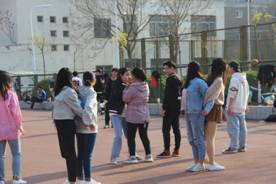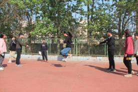 “四人五足”游戏中,同学们一边喊着“121”的口号,一边有节奏地前进。在游戏中不仅收获了快乐也收获了友谊。