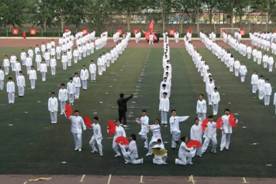 学子们的共同努力,他们曾冒着清晨凛冽的寒风,也曾顶着正午毒辣的烈日,在训练场上认真琢磨每招每式。那些伴着清晨寒气、正午骄阳和黄昏彩霞的练习,使得选手们的动作一天天娴熟,队伍一天天趋于整齐,最终成就了行云流水、百人如一的境界。也正是太极,让大家有了一个共同的目标,为了同一份荣誉团结在一起。