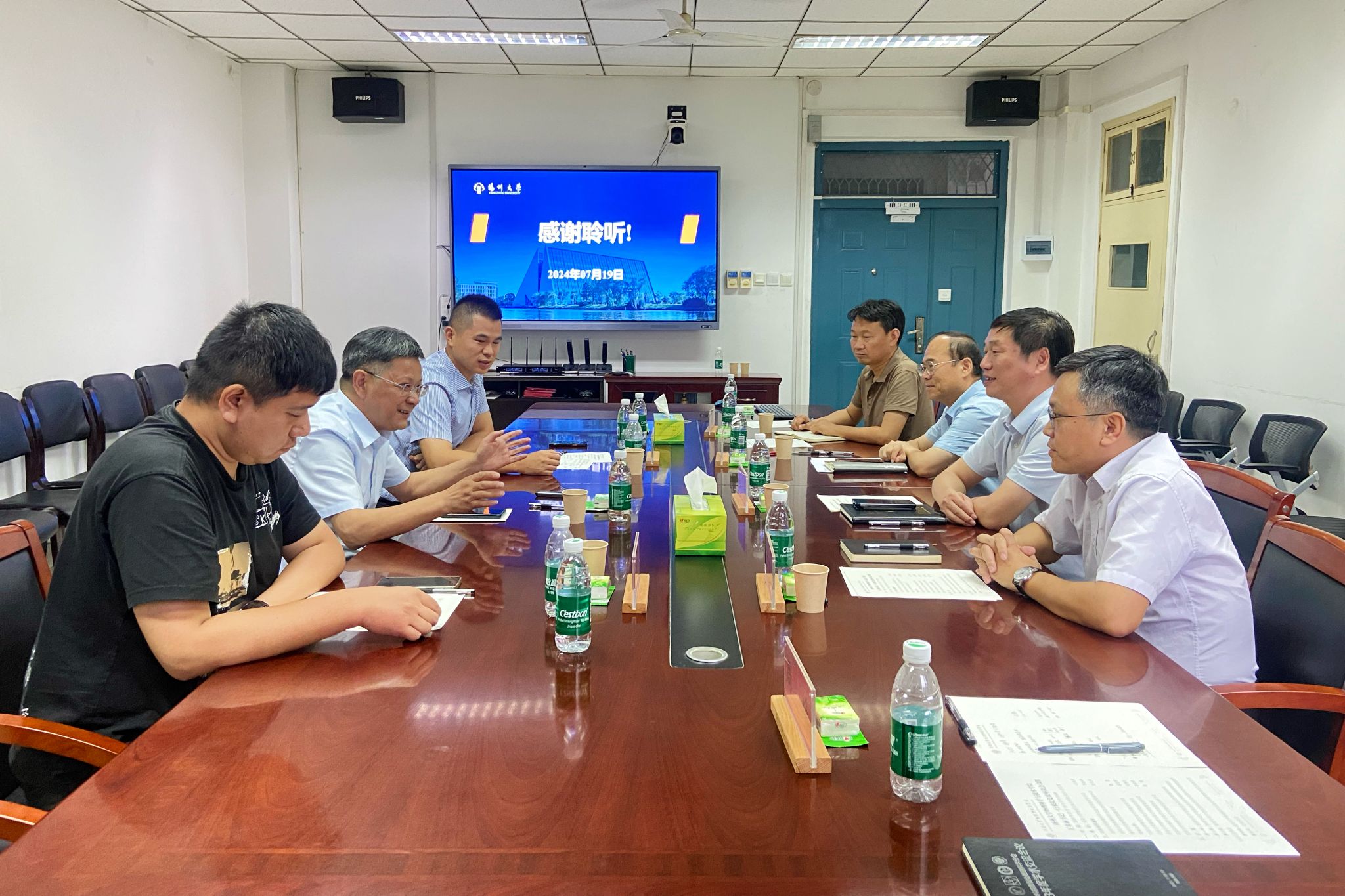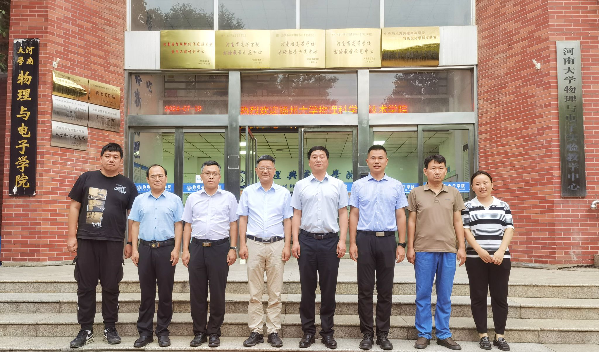7月19日下午,扬州大学物理科学与技术学院党委书记王春雨、副书记毕瑜林一行3人来访51大赛 ,并在学院A311会议室召开座谈会。51大赛 党委书记张慧、执行院长李国强、党委副书记刘寒冰、副院长李新营、研究生辅导员周焕参加座谈。