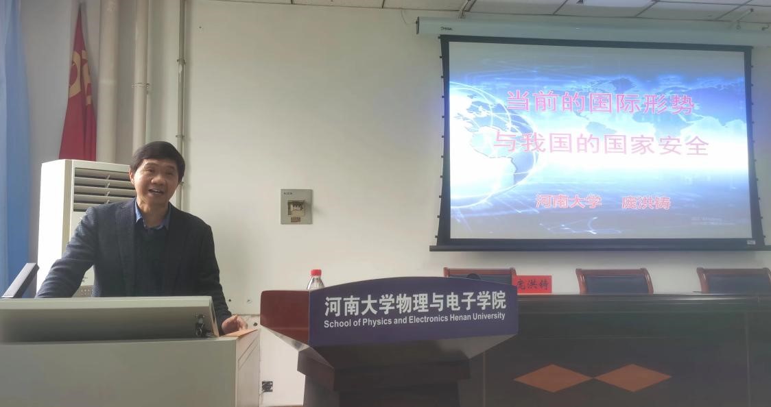 邀请哲学与公共管理学院庞洪铸教授在A楼313会议室以“当前的国际形势与我国的国家安全”为题作专题报告。学院领导班子成员、党委委员、组织员、各教工党支部书记、系室主任、全体辅导员参加会议,会议由学院党委书记王宏华主持。
