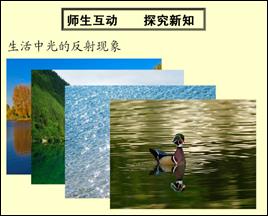 回顾光线和光沿直线传播的知识,选择优美熟悉的场景,引起学生的共鸣,从而对生活中的光的反射现象有所认知。