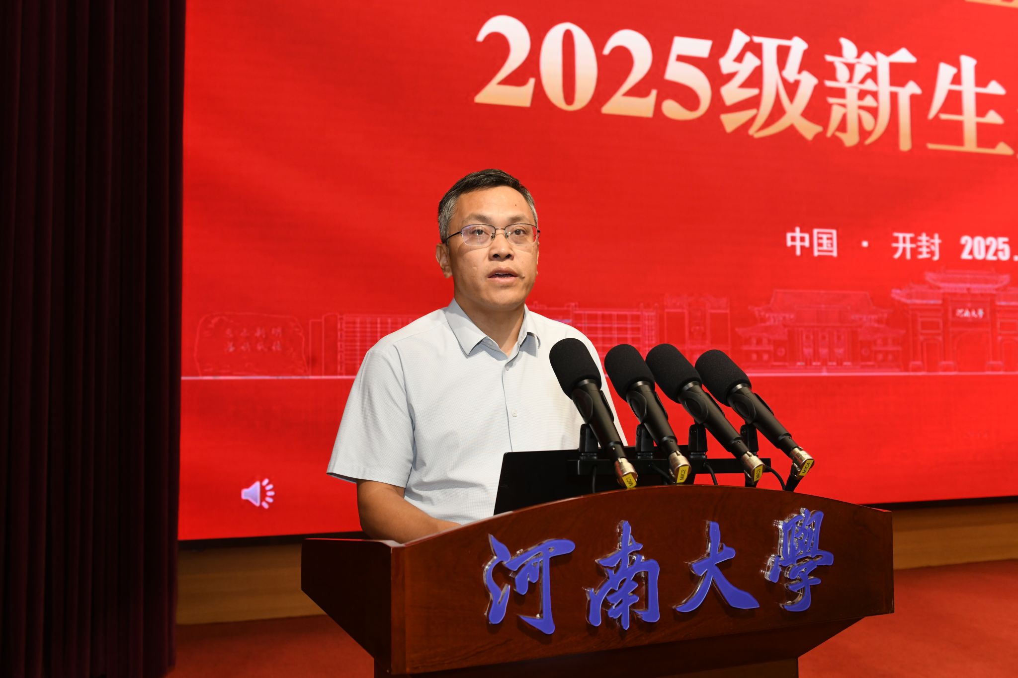 执行院长李国强代表学院向2025级新生致以诚挚欢迎。他简要介绍了学院的基本情况,并对新生提出希望:一是永葆求知之心,夯实学业根基。转变角色,适应新的学习节奏,广泛涉猎知识,培养科学精神与批判性思维,积累专业基础与学术本领。二是勇立创新之志,探索未知领域。要敢于质疑、积极参与科研,培养跨学科思维,研究生更要瞄准科技前沿求突破。三是锤炼坚韧品格,乐观面对挑战。继承和发扬河大人百折不挠、自强不息的精神传统,以积极态度应对求学路上的困难,培养积极乐观的人生态度和坚韧不拔的意志品格,传承河大精神。四是胸怀家国之责,矢志科技报国,要将个人理想融入国家发展,以所学服务社会、贡献国家,成长为担当民族复兴大任的时代新人。