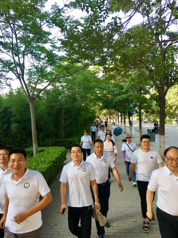 下午四点三十分,学院教职工从学院楼前广场出发,沿着双兰路,按顺时针方向,途径中州东路中州南路文澜路、镜如湖,最后返回学院楼前广场老师们个个精神饱满、热情高涨、步伐矫健,一路上欢声笑语、你追我赶,行走于天然“氧吧”间,充分感受到了在美丽的河大校园里运动的舒适和惬意。