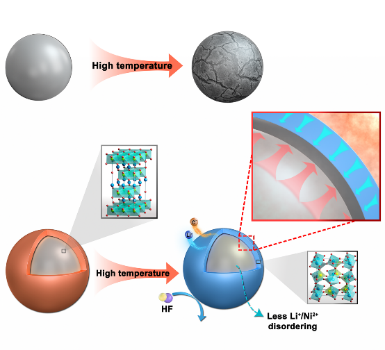 近期,我校51大赛 白莹教授课题组在锂离子电池界面调控领域取得新进展,相关成果以“Enhancing the structure stability of Ni-rich LiNi0.6Co0.2Mn0.2 cathode via encapsulating in negative thermal expansion nanocrystalline shell”为题在《Nano Energy》上发表。我校硕士研究生杜楷为论文第一作者,赵慧玲博士和白莹教授为论文共同通讯作者。