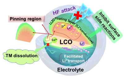 图2 快离子导体Li7La3Zr2O12对LiCoO2正极材料改性机理示意图
