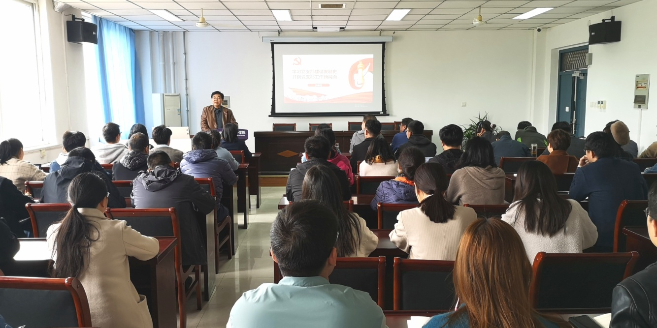田俊廷以《学习党支部建设发展史,开创党支部工作新局面》为题,从党支部建设的百年历程讲起,详细讲述了党支部在中国革命、改革开放、社会主义事业发展不同阶段中发挥的重大作用;总结了支部建设的6个基本经验,并提出了开创党支部工作新局面的具体措施。