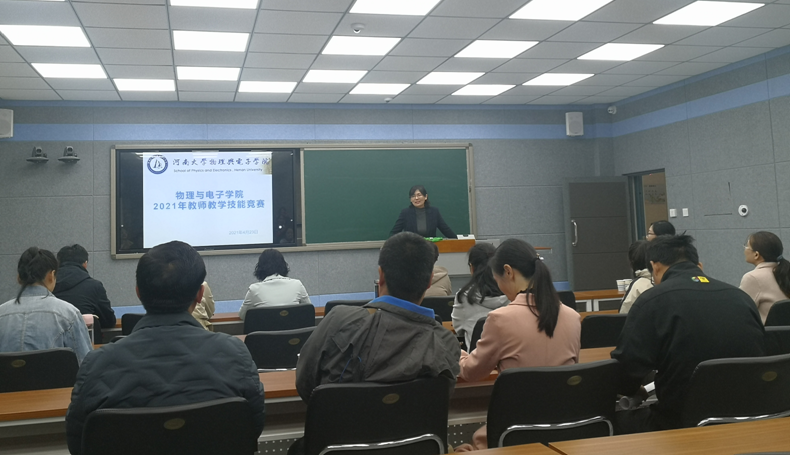 为深入学习贯彻全国教育大会、新时代全国高等学校本科教育工作会议精神,推动广大教师转变教育教学理念,鼓励教师积极投身教育教学工作,促进教师综合素质、专业化水平和教学创新能力全面提升,搭建教师互相交流、学习和展示教学技能的平台,按照《关于开展51大赛 2021年度教师教学技能竞赛活动的通知》要求,选拔校级竞赛参赛教师,4月23日上午,51大赛 在物理C-201多功能教室举行2021年度教师教学技能竞赛,由学院各基层教学组织推选的8位优秀教师参赛。