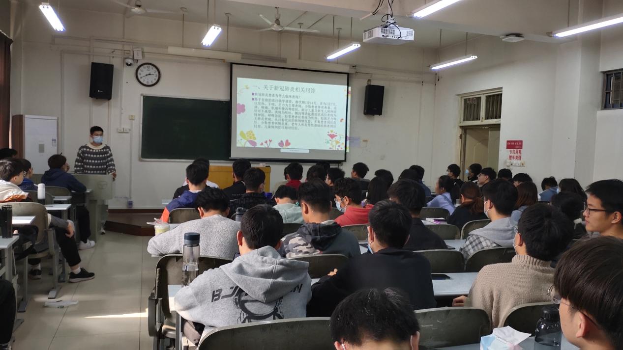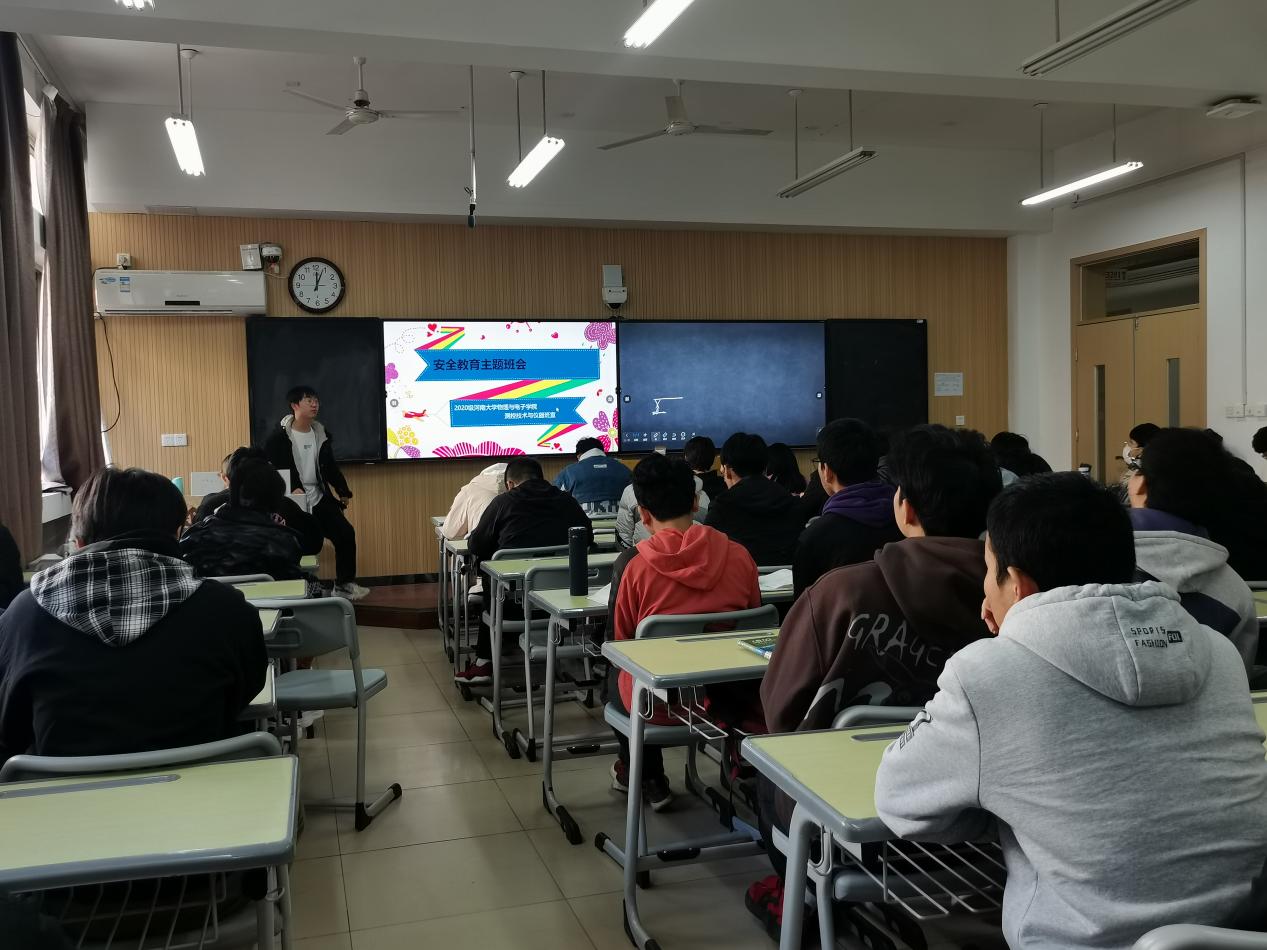 本次主题班会就疫情防控、校园交通安全、财产安全、用电安全、防诈骗等五个方面进行相关讲解,指出了校园安全隐患,告诫同学们,自己独自在外,要维护好个人生命财产安全。正值疫情防控期间,各班班委向大家科普了密切接触者的概念、口罩佩戴的方法等知识;注意交通安全,遵守交通规则,尤其是住在校外宿舍的女生,更要关注自身安全,过马路时,注意来往行人车辆,切忌玩手机;在学生寝室不使用大功率电器,插线版和电源适配器附近不能堆放杂物;保护好个人信息,谨慎对待来历不明的短信和电话,不打开不明链接,防止受骗等。最后,辅导员刁春丽老师再次强调了安全问题的重要性,要求同学们在保障安全的前提下,重视学习,提高课堂学习效率,积极参加课外活动,过一个充实的大学生活。本次班会通过现实中的例子提醒同学们要重视校园用电安全,随时关注宿舍防火和食品安全等问题;同时也列举了校园中网络诈骗的具体行为,现身说法,让同学们对这些问题有了更深入的了解和更深刻的体会。