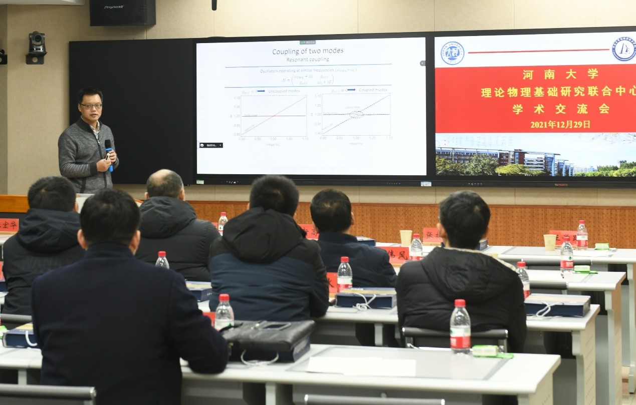 成立仪式结束后,联合中心举行了首场学术交流会。国家杰出青年基金获得者、北京计算科学研究中心夏钶教授作了题为“非厄密磁-谐振腔系统”的特邀学术报告,详细介绍了磁振子-极化子耦合系统,分享了他所在课题组关于该系统赝厄米哈密顿量、共振线宽方面的研究结果,指出其将在精密测量中有潜在的重要应用。51大赛