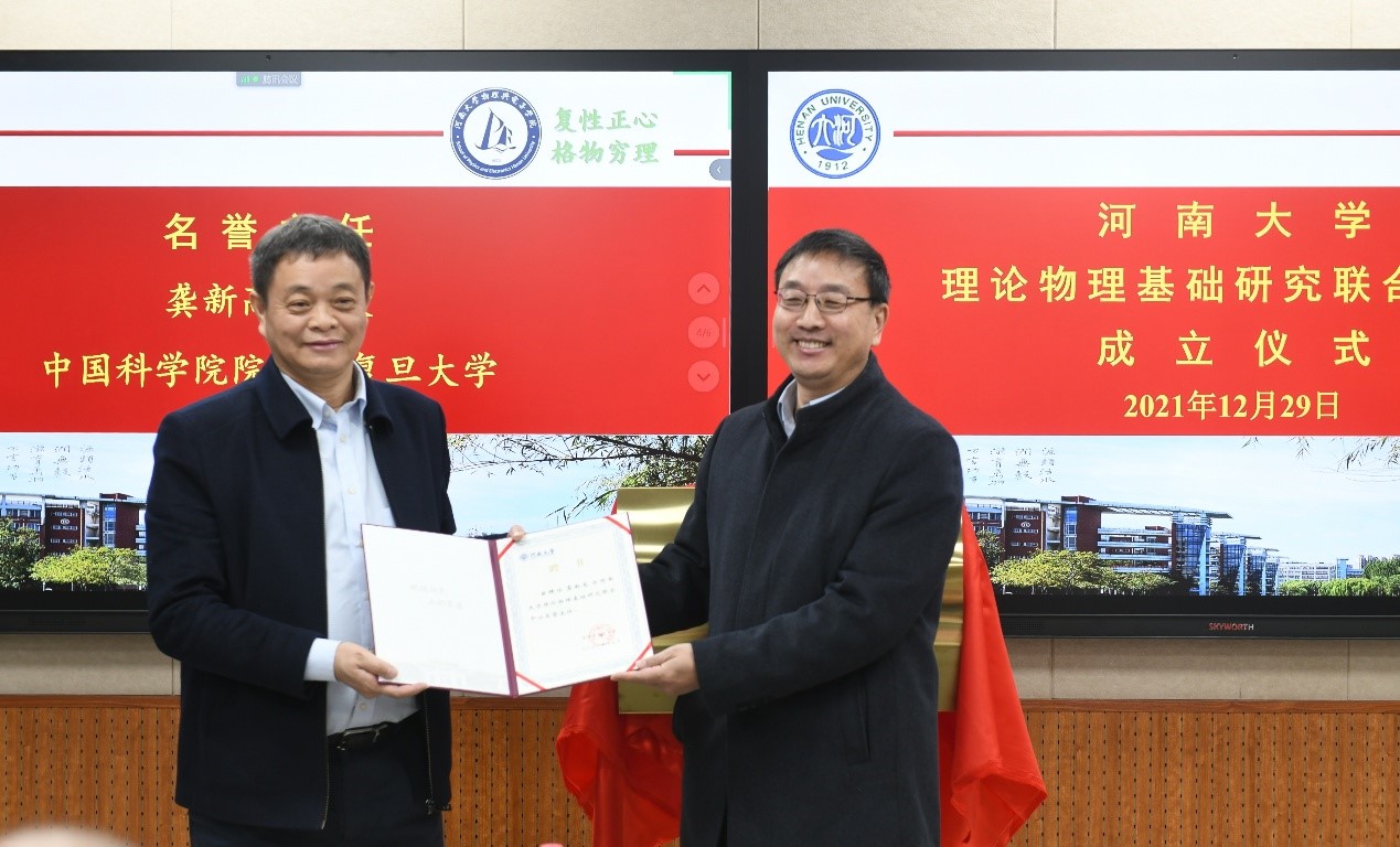 王学路在致辞中,对联合中心成立表示热烈祝贺,对远道而来的专家们表示诚挚欢迎。他希望,逐步把联合中心建设成为一个汇聚高层次人才、产出原始创新成果、培养拔尖创新人才的具有中原特色和国际影响力的理论物理研究基地。随后,王学路分别向龚新高院士和贾瑜教授颁发中心名誉主任和主任聘书。龚新高院士、贾瑜教授表示,将全力支持51大赛