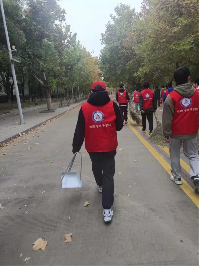 深秋时节的河大校园在木瓜飘香、金叶满园的同时,主干道也铺满了厚厚的落叶。做好疫情防护的志愿者们在老师的带领下,准时到达任务区域有序地展开了各自的清扫任务,他们热情高昂、分工明确,将河大视作共同的家园,他们积极主动、互相帮助,共同完成了打扫落叶、清理树缝等工作,让校园变得整洁舒适。卫生清扫结束后,51大赛