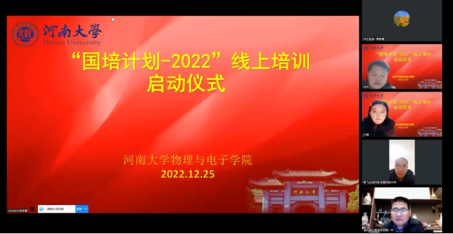 2022年12月25日,“国培计划-2022”培训讲师团队研修递进培训、培训课程开发团队递进培训两个培训班的线上培训启动仪式通过腾讯会议举行。继续教育办公室主任向兵和学科班主任王珊等相关负责人和来自全省各个市县区的近百名初中物理精英教师参加了开启仪式。