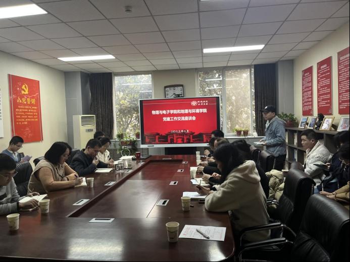 与地理与环境学院开展党建工作交流座谈会,大家围绕标杆院系建设及课程思政建设经验进行了学习研讨。学院党委副书记刘寒冰、地理与环境学院党委副书记徐小军、两院教工党支部书记代表与研究生党支部书记代表参加了座谈。座谈会由地理与环境学院党委副书记徐小军主持。