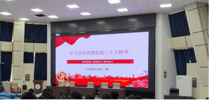 为深入学习宣传贯彻党的二十大精神,不断引领青年学子汲取新力量、奋进新征程,坚定不移听党话,跟党走。2023年3月25日上午,大学物理教工党支部书记康缈老师以“学习宣传贯彻党的二十大精神”为主题为学院入党积极分子宣讲党的二十大精神。