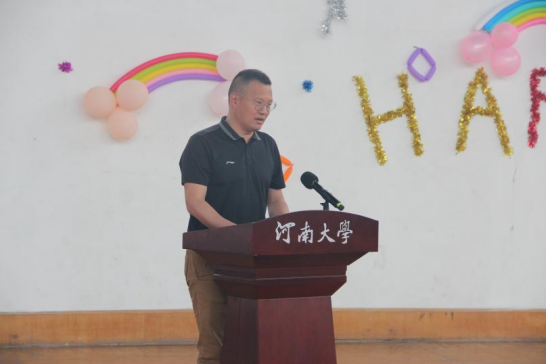 党委书记张慧致开幕词,他指出少年强,则国强。少年儿童是承前启后,继往开来的一代,是背负中国梦圆的一代。本次活动以“少年健智 中华昌盛”为主题,旨在互动情境下,激发爱国情感,增进院系交流,传承红色基因,共筑伟大复兴中国梦。并期待通过本次亲子游艺与科普活动,增进父母和孩子间的默契与和谐,让孩子们领略物理科学的魅力。
