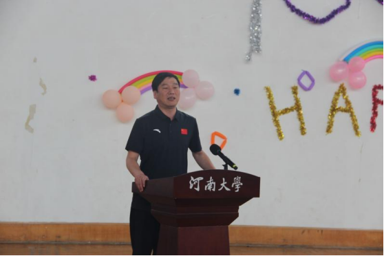 活动在庄严的国歌声中拉开序幕。体育学院院长周珂致欢迎词,向前来参加亲子游艺活动的全体老师和小朋友们表示最热烈的欢迎,向小朋友们致以最亲切的节日问候和最美好的祝愿,祝愿小朋友们健康快乐,茁壮成长!并表示本次活动“以体育智”与“以体育心”相结合,趣味游戏竞赛与科普知识学习相结合,期待通过这种趣味活动形式,让孩子们在快乐参与中,促进身心健康发展,强身健智,同时增强父母与孩子之间情感交流,培养孩子们之间的深厚友谊。
