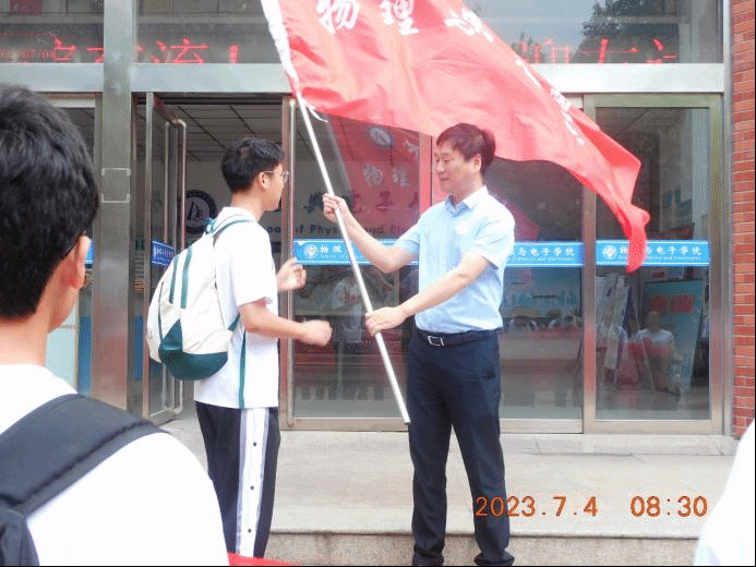 A楼前隆重举行。学院党委书记张慧、党委副书记刘寒冰、辅导员张婷等出席本次出征仪式,出征仪式由党委副书记刘寒冰主持。