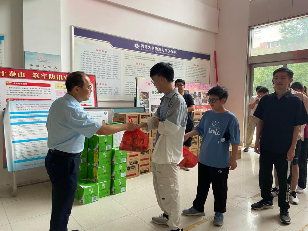 学院领导老师为留校学生发放精心准备的“防暑降温大礼包”,每份大礼包内包括绿茶、花露水、火腿肠等物品,寄托着学院对留校学生的深切关怀与殷切期望。院领导叮嘱学生们:严格遵守校规校纪,做到有事离校要履行请假手续;提高自我保护意识,主动了解掌握自然灾害预防、自救常识,注意宿舍用电安全;主动关心同宿舍同学,注重防暑降温;随时保持信息畅通,遇到困难及时与导师及辅导员沟通联系。院领导老师的关心和问候给炎炎夏日里的留校学生送去了一缕清凉,让他们充分感受到了学院的关心和爱护。同学们纷纷表示要更加珍惜暑期留校时光,以积极的心态、健康的体魄投入到暑期的学习生活中,努力充实自己。