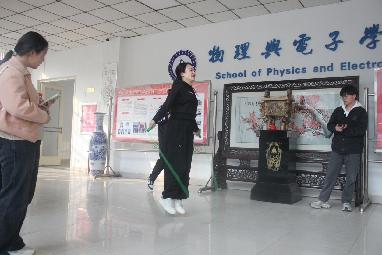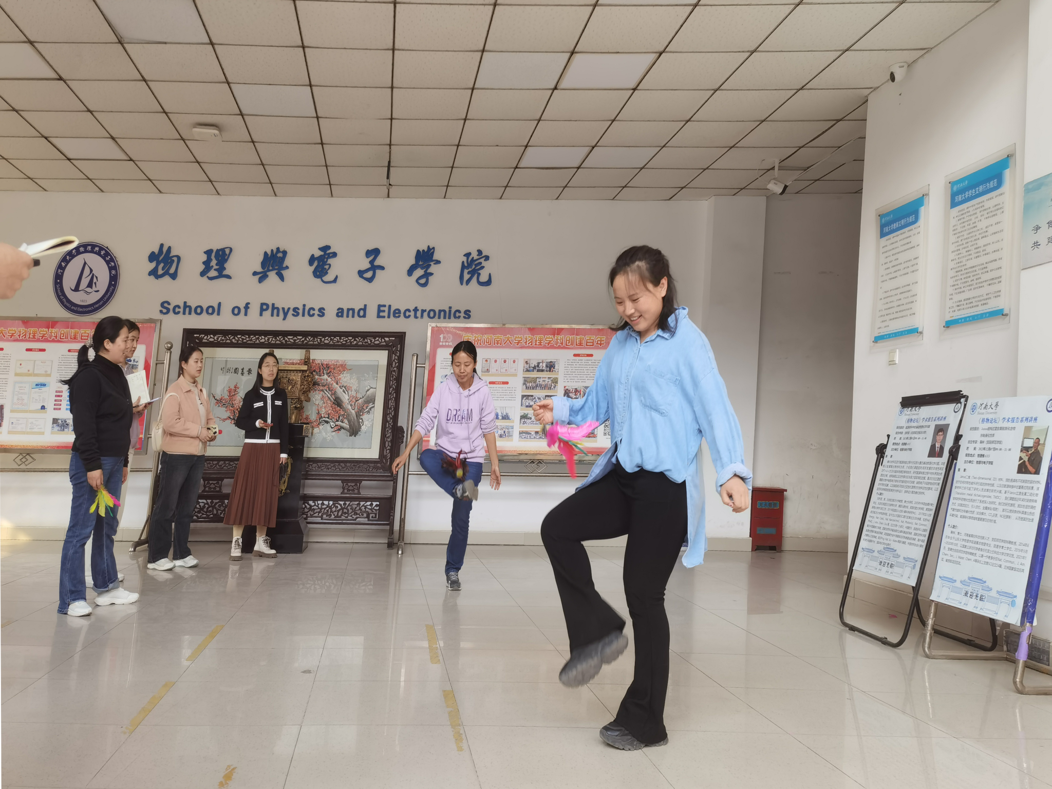 3月14日下午讲座结束后,紧接着在物理楼前举行了跳绳和踢毽子比赛。女教师们踊跃参加,她们个个精神抖擞,身轻如燕,大放光彩,在比赛中尽情享受运动的快乐。