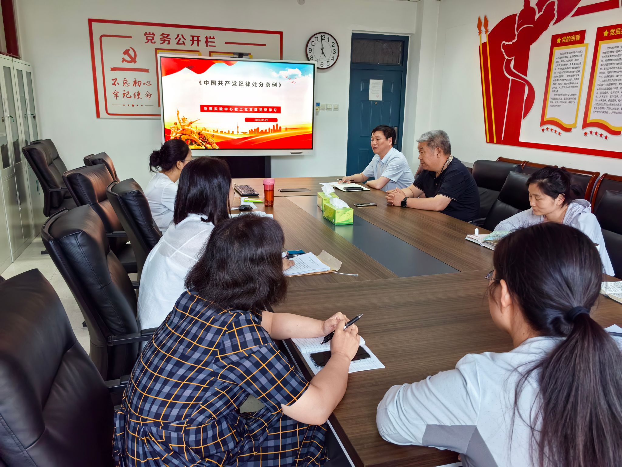 5月23日下午,物理实验中心教工党支部组织全体党员集体学习《中国共产党纪律处分条例》(以下简称《条例》)。学院党委书记张慧作为支部成员参加会议。支部书记魏凌主持会议。