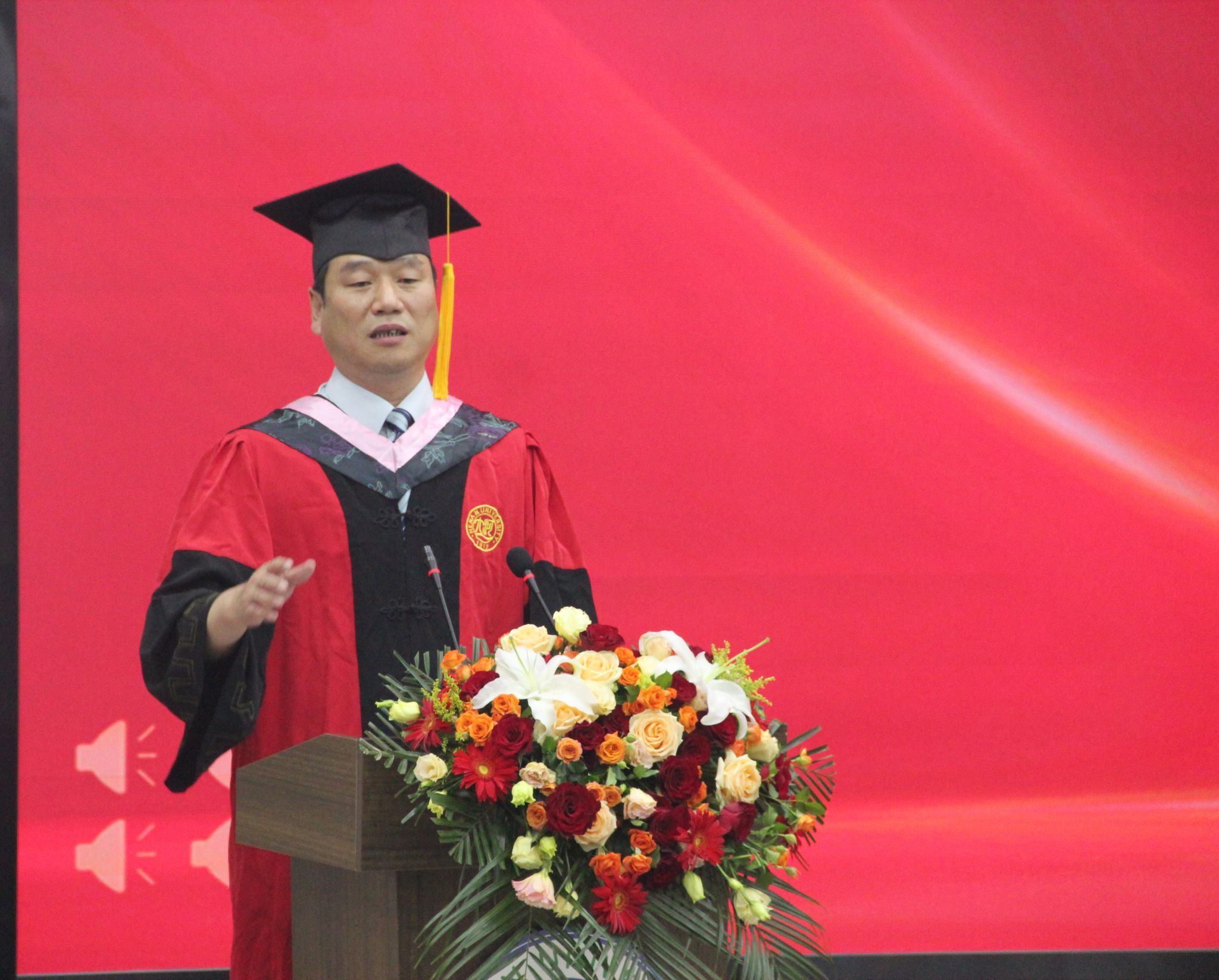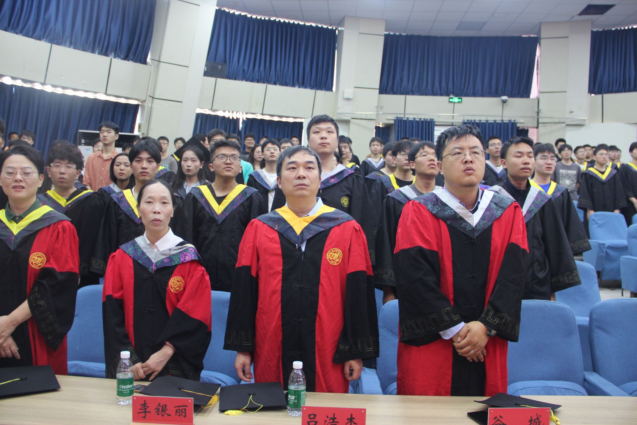 典礼在庄严的国歌声中拉开帷幕。学院学位评定委员会副主任、副院长刘名果宣读51大赛