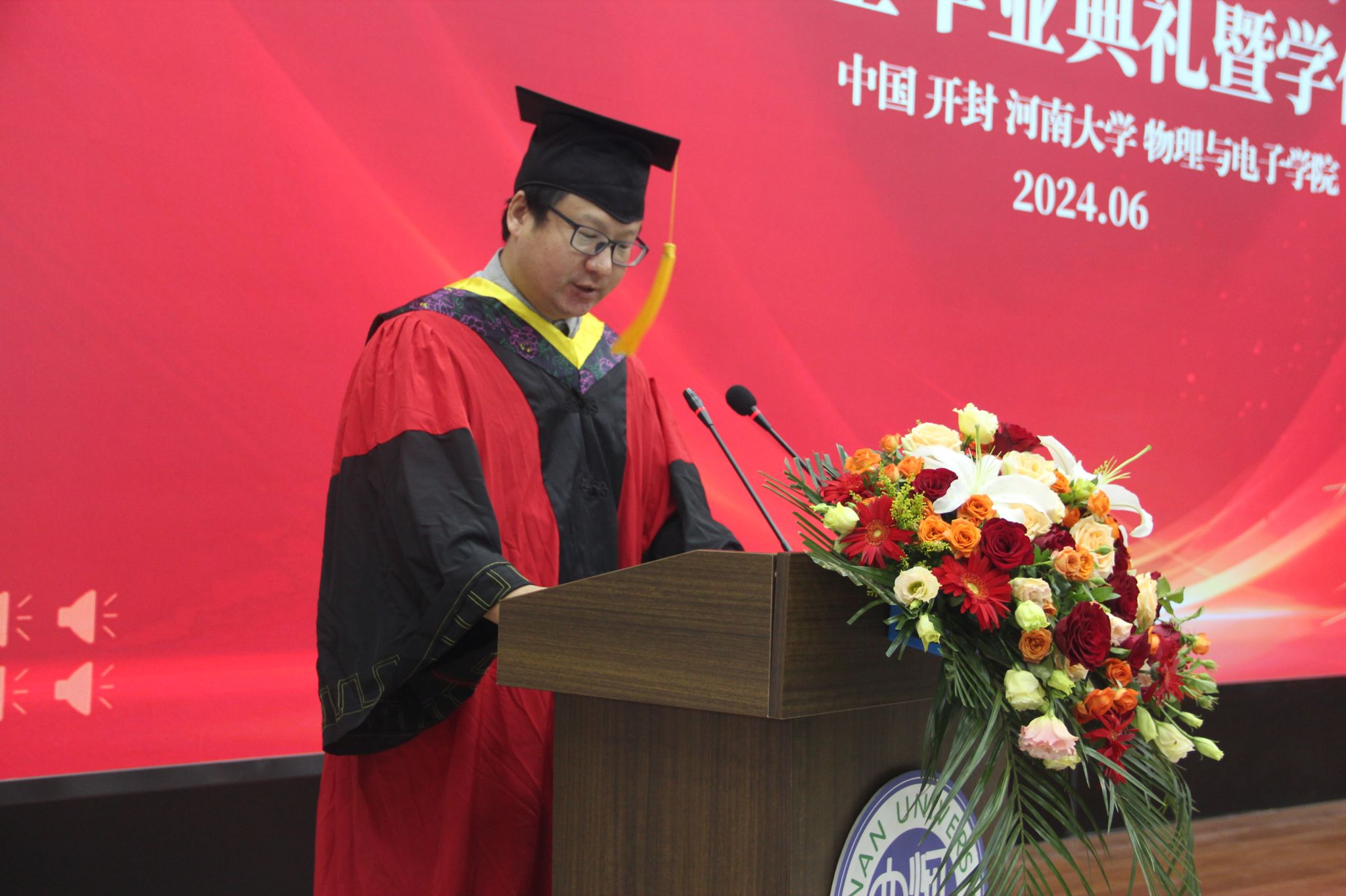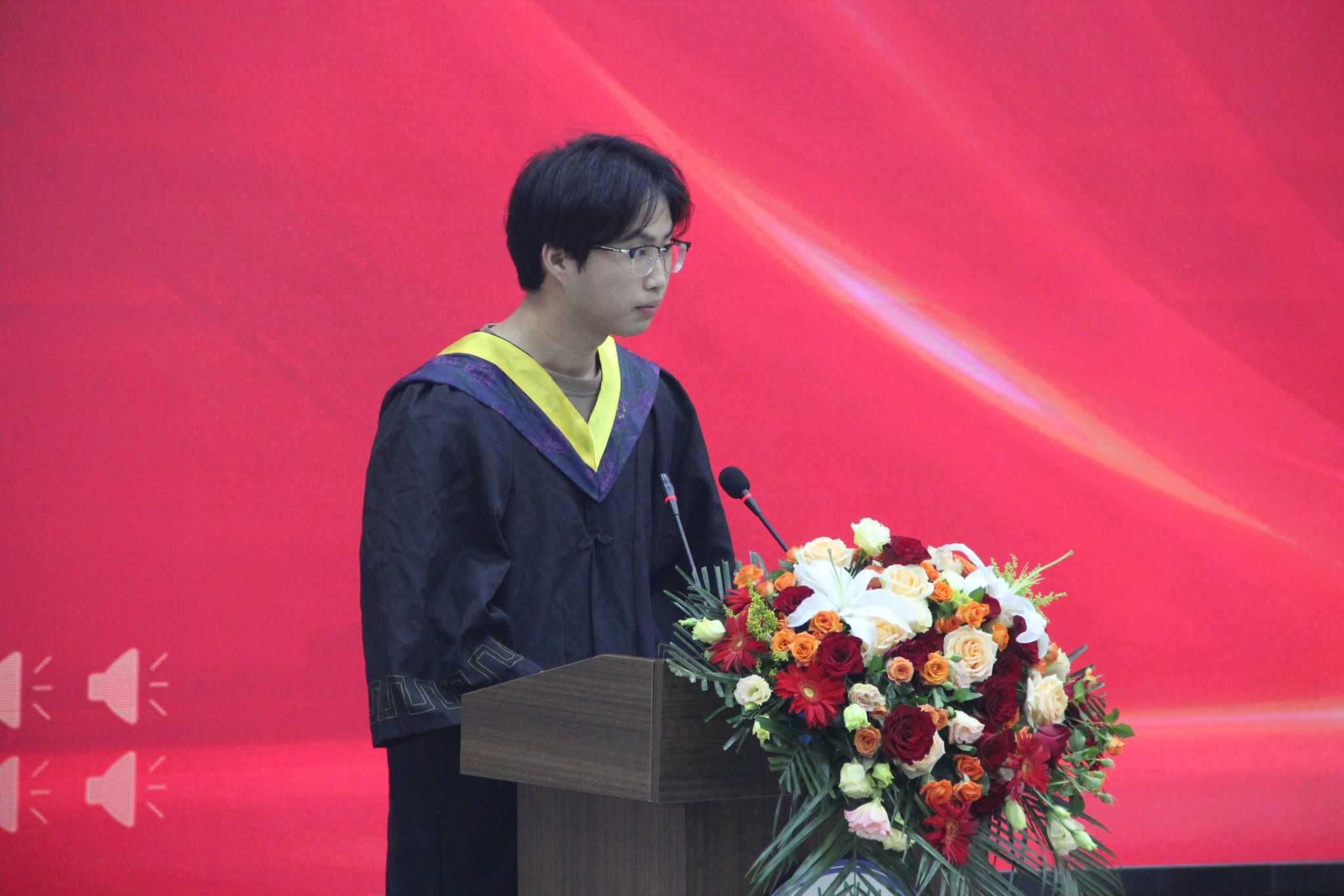 “师德之深,如沧海,如泰山。”2024届本科毕业生朱正兴在发言中表示,四年的大学生活让他在擅长的领域结识了更多朋友,他由衷地感谢四年来学院的精心培养和每一位老师的无私付出,2024届毕业生一定会永远坚定自己的目标,让青春永不褪色。