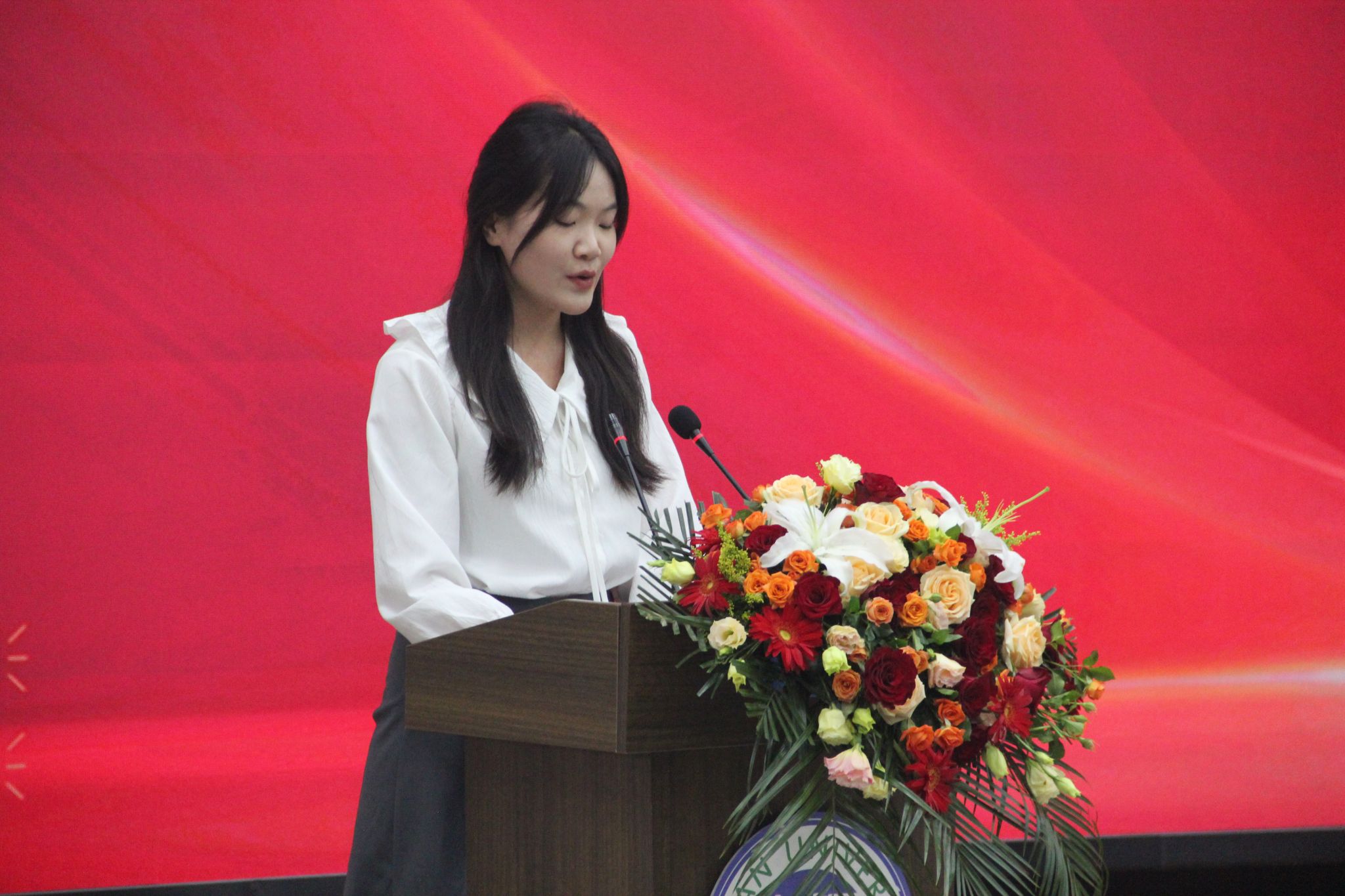 21级物理学专业陶靖文同学作为在校生代表发言。她代表全体在校本科生真诚感谢学长学姐们的热情帮助和无私奉献,并祝愿他们能在未来的道路上越走越远,追求更高的目标,实现自己的梦想。