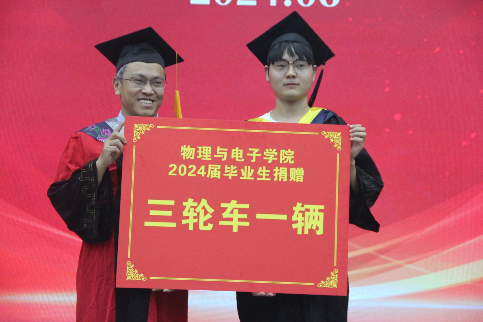 在毕业生代表向学院捐赠完礼物后,院领导们亲自为毕业生代表颁发了精心准备的纪念品,这些纪念品不仅承载着学院对毕业生们的深厚情谊,更是对他们未来人生道路的美好祝愿。
