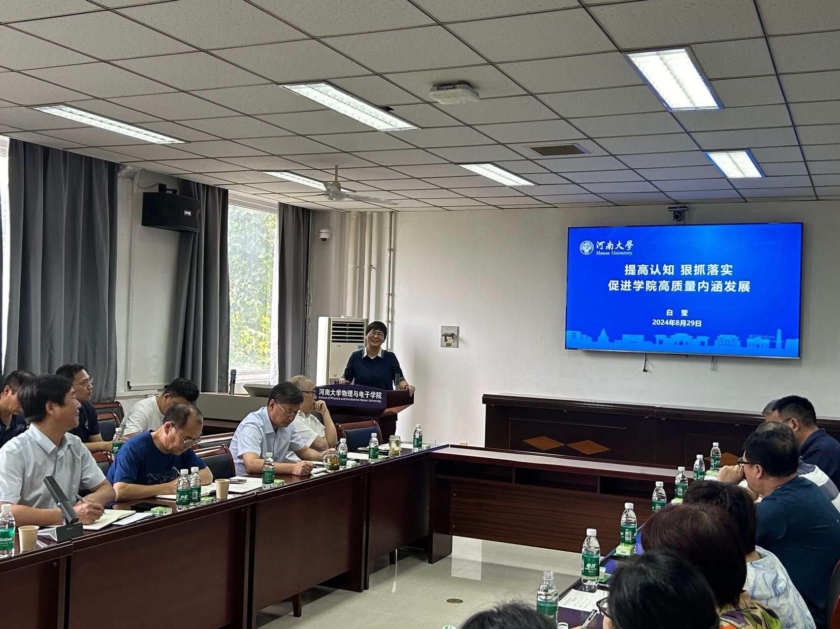 执行院长李国强传达了学校战略发展研讨会、人才人事工作会议和学科建设及专业调整优化、新工科建设等会议精神。在《解放思想提高学院内涵建设质量》报告中,从人才培养、师资队伍、科学研究三个方面分析了2024年学科建设任务计划,并就如何更好落实学校会议精神提出学院工作安排的建议。他希望教职工们要坚定“希望在奋斗之中”的信念,为学院发展聚合力、为河大师生谋幸福、为河大振兴而奋斗。