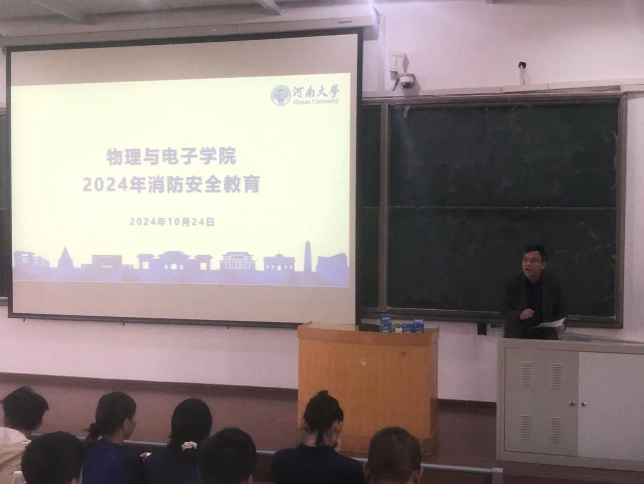 邀请开封城乡一体化示范区消防救援大队宣传干事李楠、学院贺宇路老师,在金明综合楼2306教室为学院2024级本科新生分别开展消防安全教育和实验室安全教育,执行院长李国强主持本次安全教育活动。