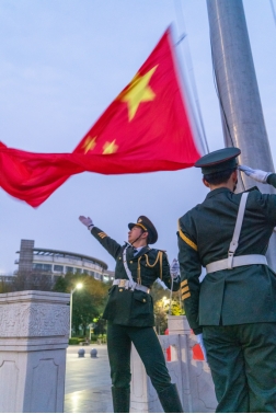 于11月18日在金明校区明德广场举办升国旗仪式。各年级辅导员及全体本科生、研究生参加了此次升旗仪式。