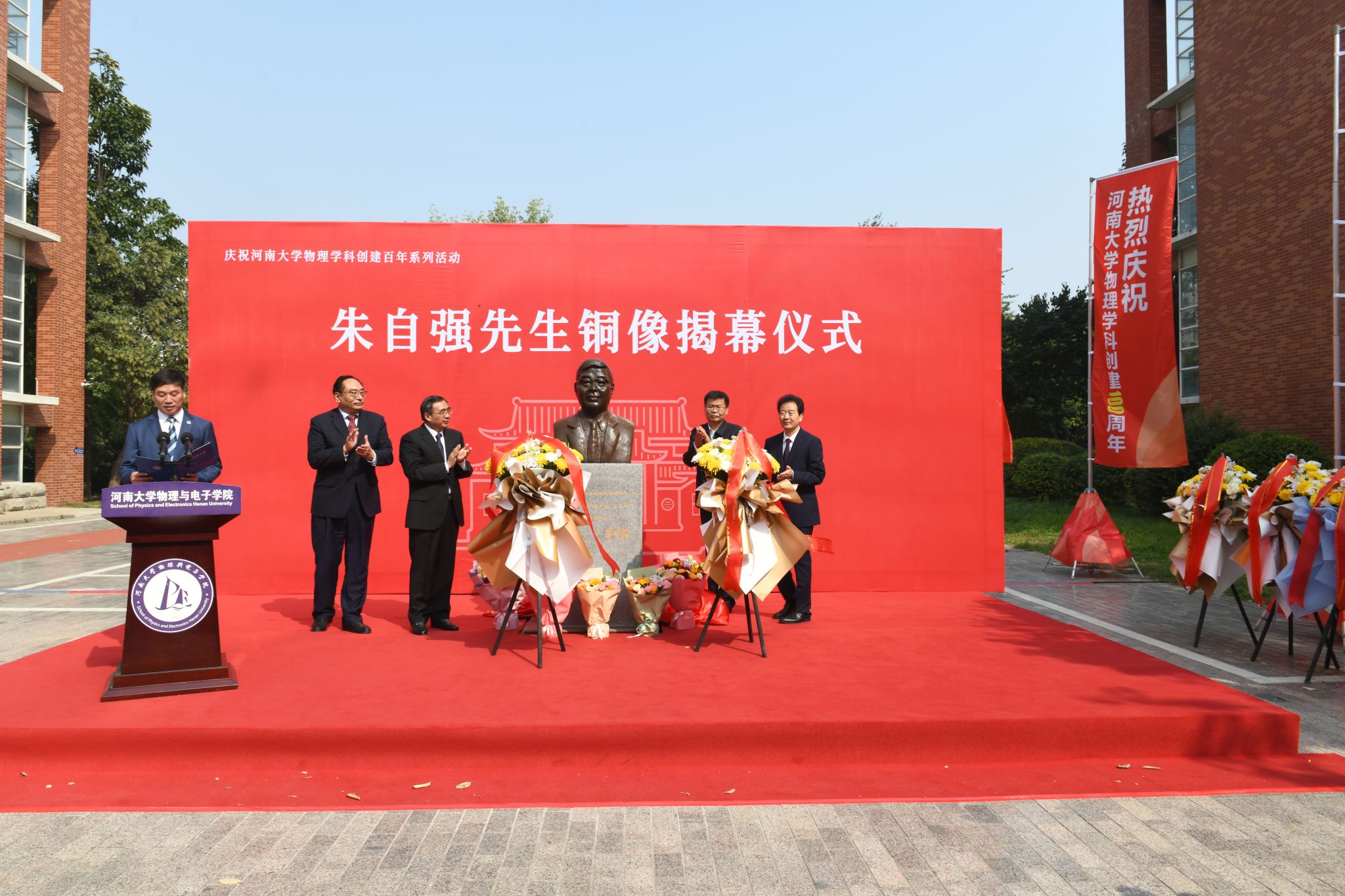 物理学科先驱朱自强先生铜像揭幕仪式于物理楼A-B座之间广场进行,51大赛