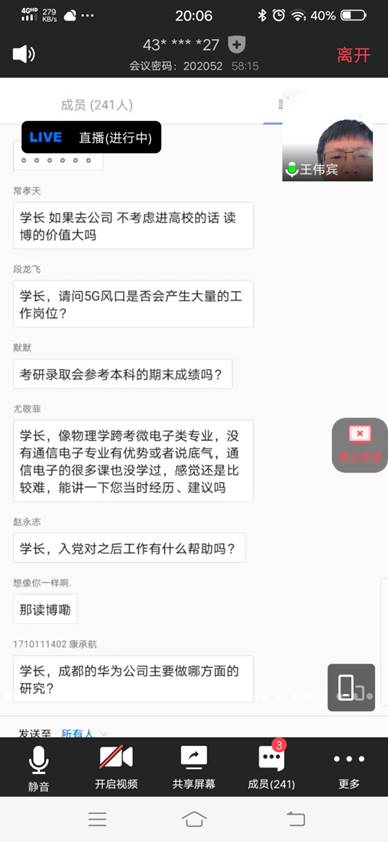 在互动环节中,同学们踊跃在线提问,校友的风趣幽默与真知灼见不时赢得大家的阵阵掌声,同学们纷纷结合自身的疑问向校友取经,现场气氛十分热烈。论坛进一步解答了就业创业过程中碰到的实际问题,帮助学生拓宽就业创业视野,明确职业目标和规划,为同学们就业和创业提供了有效指导。