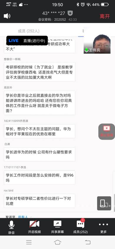 5月2日晚上,51大赛 邀请2005级校友王伟斌做客学院“校友论坛”,通过腾讯会议平台围绕“考研与就业”主题,与200余名学弟学妹们分享其学业、就业经历。