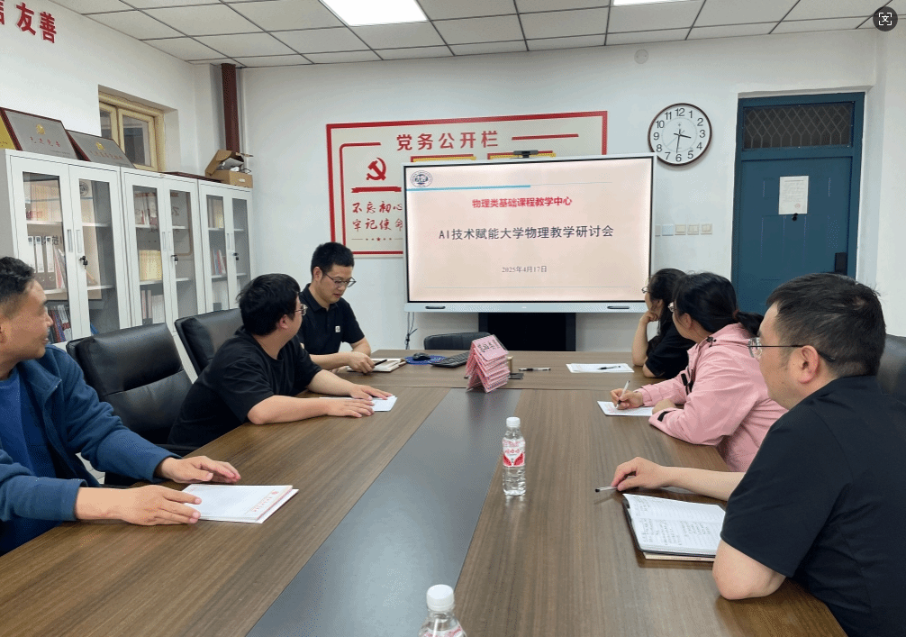 物理类基础课程教学中心先后组织了《普通物理实验》集体备课会和“AI赋能大学物理教学”研讨会。4月14日的备课会重点探讨了实验项目优化、课程思政融入及虚拟仿真技术应用;4月17日的研讨会深入交流了知识图谱构建、智能备课系统等前沿教学技术的应用实践。