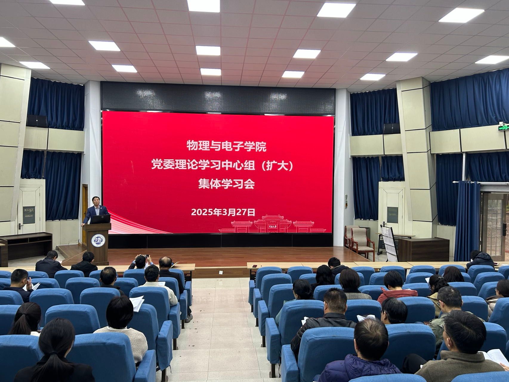 党委书记张慧作题为《以终为始 以行为知 努力实现高质量发展和高水平安全良性互动》的专题报告,从“深入学习领会习近平总书记重要讲话精神”“学习贯彻全国两会精神”“学习贯彻《教育强国建设规划纲要(2024-2035年)》”“传达学校会议精神”四个方面,系统阐释两会精神核心要义以及学校会议精神,并结合学院实际部署安排重点工作。他指出,要牢牢把握高质量发展主线,以“教育、科技、人才”三位一体协同发展为抓手,深化教育教学改革,以有组织人才培养、有组织教学科学研究、有组织成果转化和社会服务,推动有组织学科建设提质进位。全体教职工要深刻领悟“两个确立”的决定性意义,将学习贯彻全国两会精神与落实立德树人根本任务紧密结合,强化“为党育人、为国育才”的使命担当。
