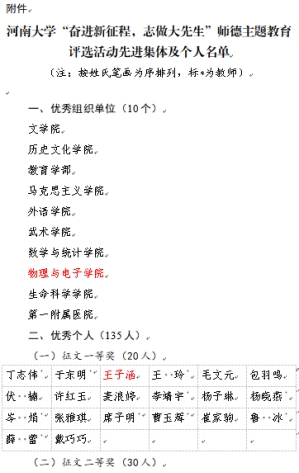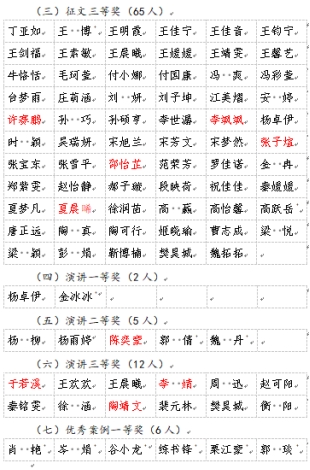 “奋进新征程,志做大先生”师德主题教育评选活动优秀组织奖,王子涵荣获征文一等奖、李飒飒等5人荣获征文三等奖,陈奕豪荣获演讲比赛二等奖、于若溪等3人荣获演讲比赛三等奖。